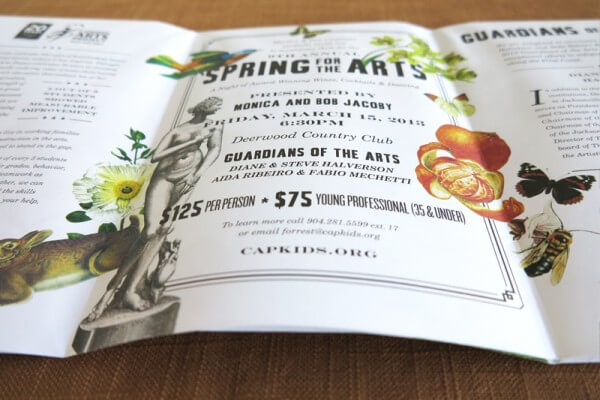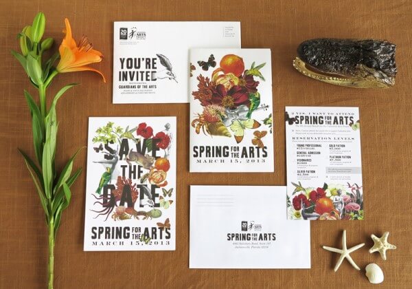 Another arts event boasting magnificent graphic design is the Spring for the Arts project in Jacksonville’s annual fundraiser. The brief was to create an invitation for the annual fundraiser which celebrated Florida State’s 500th anniversary back in 2013. Catlin Robinson from agency Wingard Creative was responsible for the gorgeously floral and inviting brochure, fitting a collage of images around bold typography that touches upon Florida’s history, nature and culture.