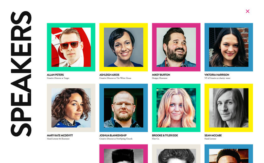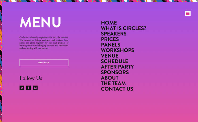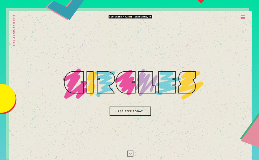 Circles is a conference that brings creative minds from all corners of the globe together for a three-day experience of workshops, panels and speakers. The website certainly inspires creativity, brimming with colour and bursting with life. The logo on the landing page cleverly reminds viewers of where every artist’s creative journey started, a shaky hand trying to fill in shaped with a crayons.